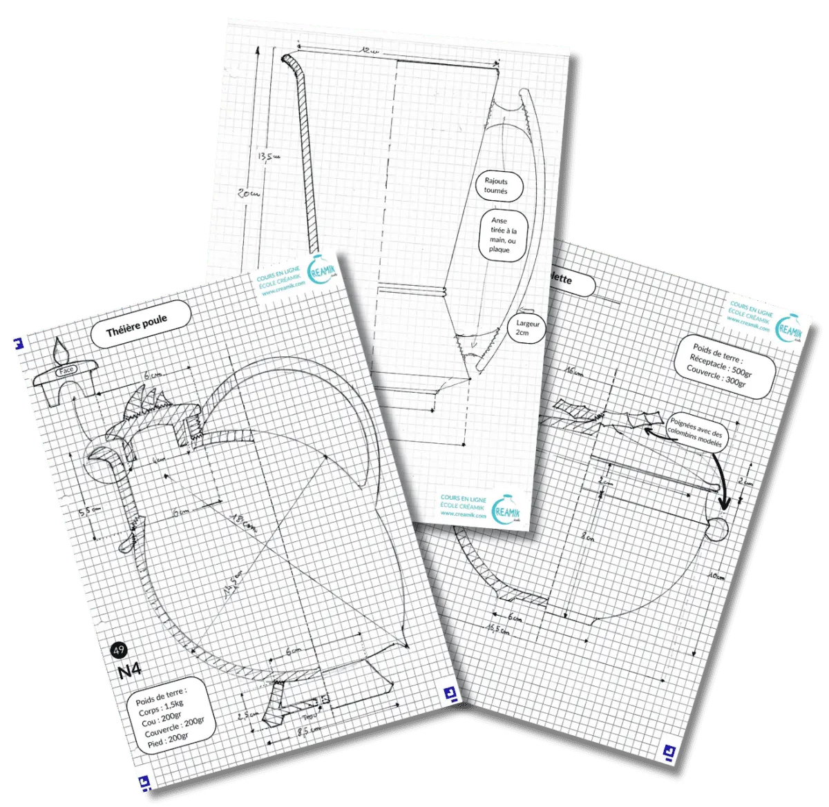 Sur la plateforme de cours de Créamik, vous trouverez une zone dédiée au cours sur les dessins techniques. Vous y trouverez les vidéos de cours et les dessins techniques à télécharger au format PDF.