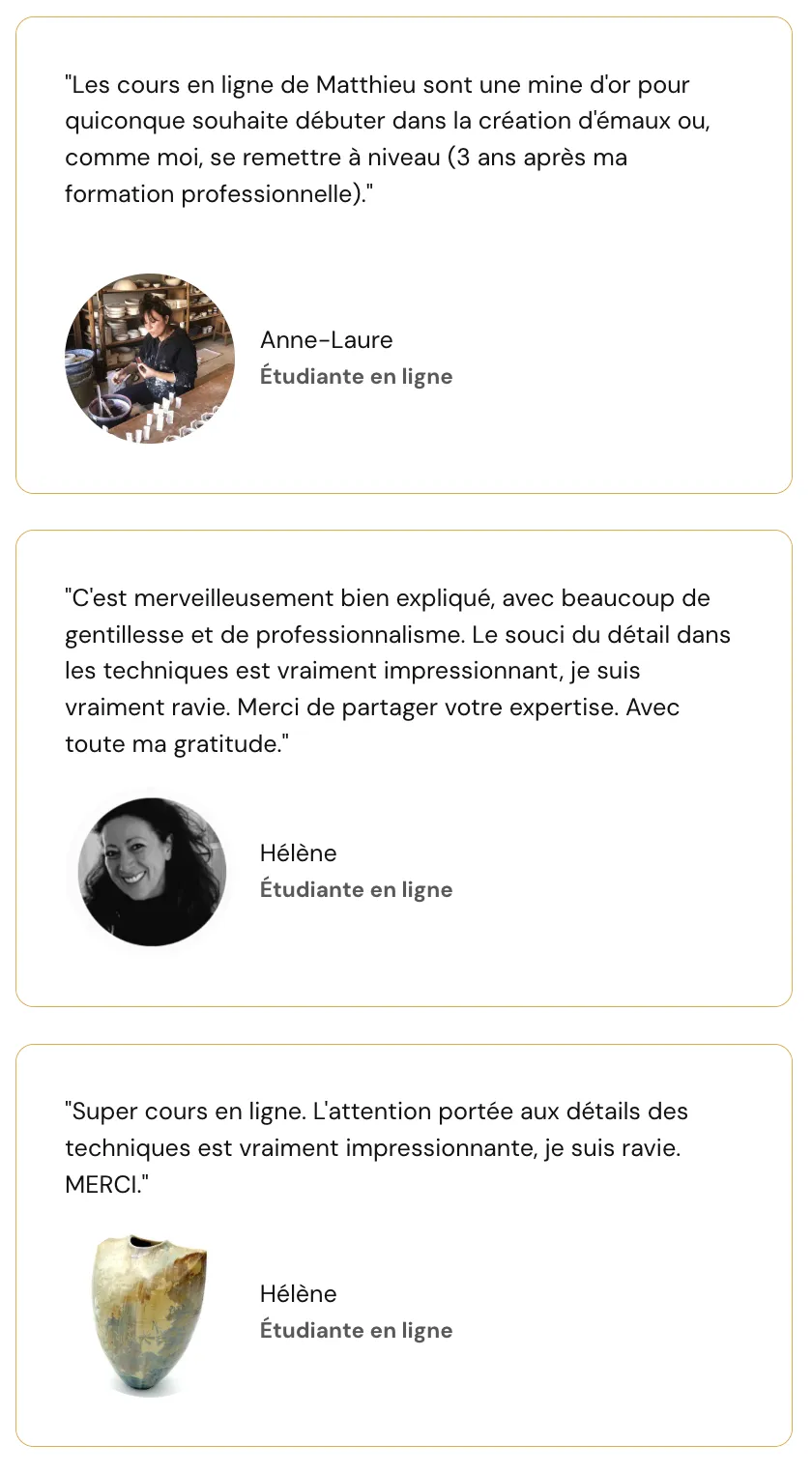 "C'est merveilleusement bien expliqué, avec beaucoup de gentillesse et de professionnalisme. Le souci du détail dans les techniques est vraiment