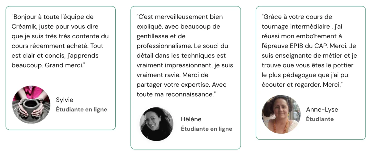 "C'est merveilleusement bien expliqué, avec beaucoup de gentillesse et de professionnalisme. Le souci du détail dans les techniques est vraiment impressionnant, je suis vraiment ravie. Merci de partager votre expertise. Avec toute ma gratitude"